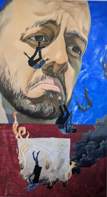 ,,A világ dolgaira érzékeny művész!" A művészetet, mint sokan mások, közlési formának tartom. A művész a műalkotáson keresztül közli gondolatait a világról a befogadóval. a befogadó pedig így jobban, más szemszögből ismerheti meg azt, ami körülveszi. Ezen felül érzékenyítheti magát, művelheti, pallérozhatja szellemét! A közhelyek az életünk részei - többségük mindenki számára érthető példabeszédek, aranyköpések, amik egy egyszerű beszélgetést is ,,emelkedetté” tesznek. A műalkotások értelmezése, értelmezhetősége régre visszanyúló probléma, a művészet elfordult a köznapiságtól és önmagának szól. Ezek alapján készítem én is a képeim: Közhelyes, hétköznapi, klasszikus témák, művészettörténetből vett vizuális elemek iróniával átszőve, melyeket képi szimbólumokkal, jelképekkel mutatok meg (szimbólumok, jelképek eredendő szerepe az érthetőség, azért szimbólum valami, mert mindenki érti, illetve mindenkinek értenie kellene). A háborút vizsgálom több szinten is: mint a világot sújtó globális rossz, mint az országot, közösségeket fenyegető erő, és mint a személy (művész) erkölcsét próbára tevő jelenség. Minden esetben egy profán tényként kezelt állítás köré épülnek a műalkotások: a háború rossz! Ennek az állításnak az ,,igazolására” készül minden műalkotás. Mivel a társadalom minden szintjén már háborúkat kell vívnunk nem hangoztathatjuk elégszer, hogy ez nem jó. Ezért állok be azon emberek sorába magam is, akik ez ellen lépnek fel. A művészet társadalom formáló erejét használva próbálom jobb belátásra bírni a befogadót, hisz a művész az, aki kellően érzékeny a világ ilyen dolgaira is.