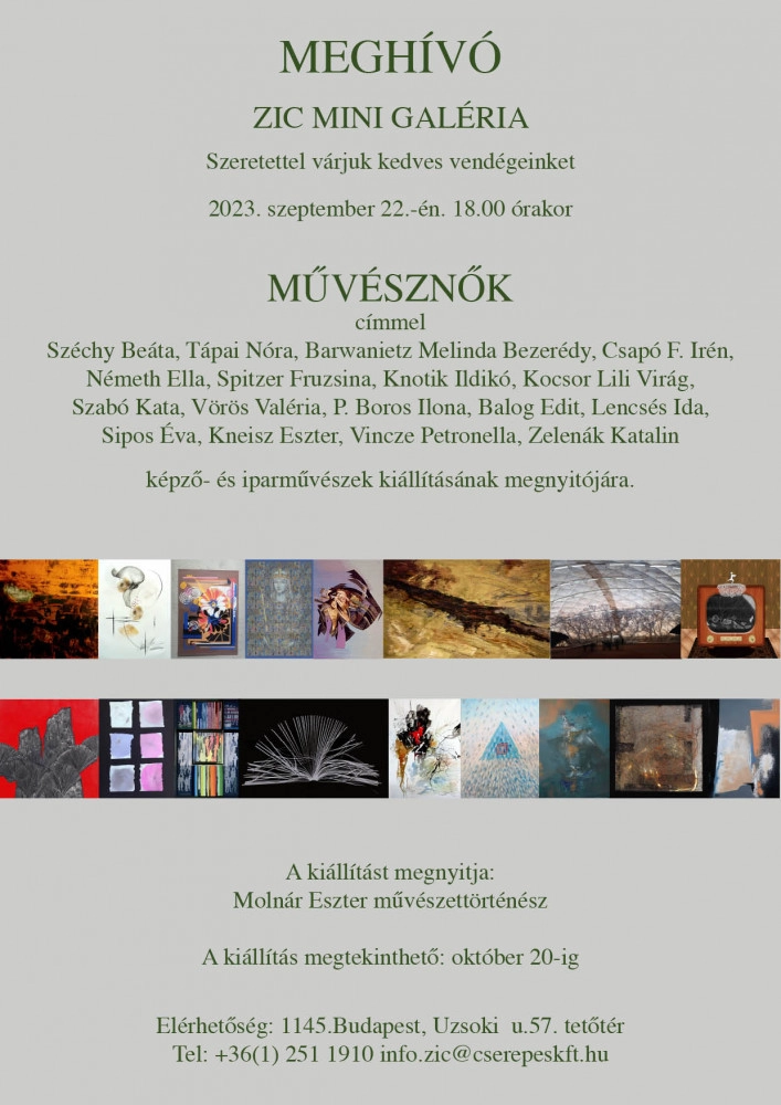 Megnyitó: 2023. szeptember 22., 18 óra A kiállítást megnyitja: Molnár Eszter művészettörténész