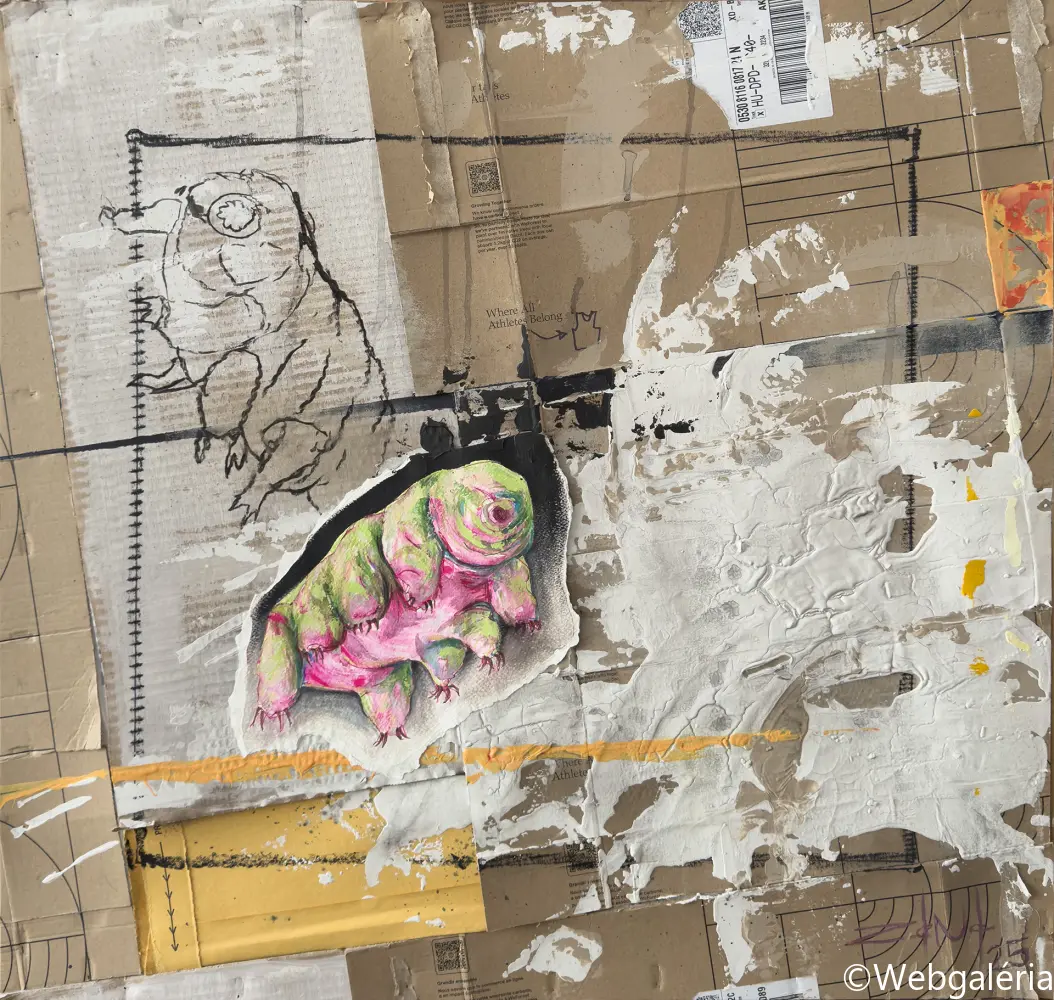 A hétköznapi tárgyak és az ember kapcsolata köré épülő festészet, az illusztrációtól a fenntarthatóságot kutató vegyes technikákig. Munkáimban a jelentéktelennek tűnő részletek válnak az otthonunkról és környezetünkről hordozott vizuális lenyomatokká.
