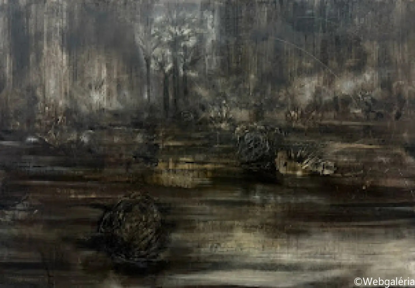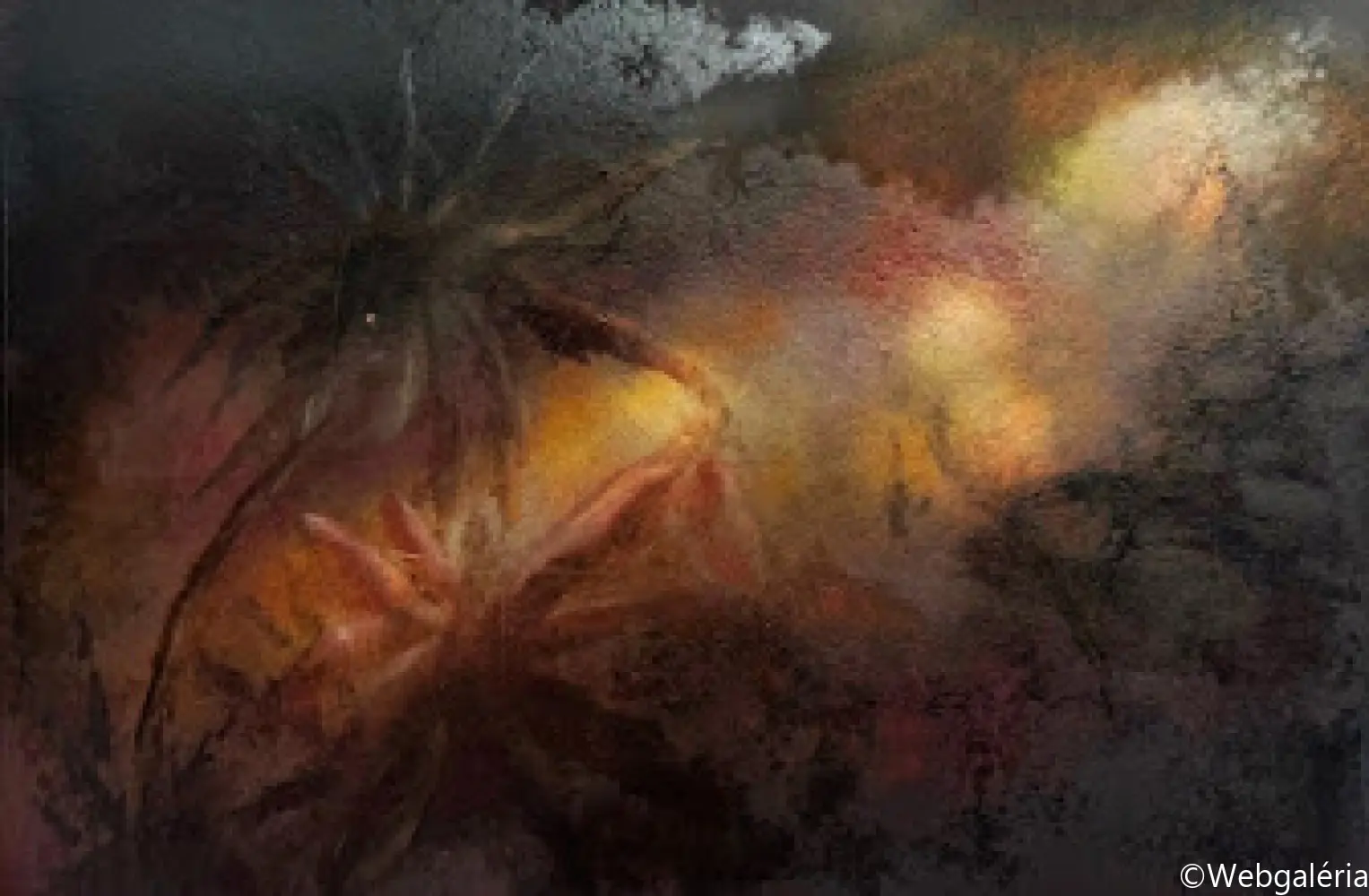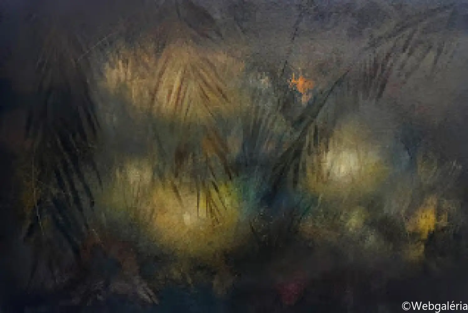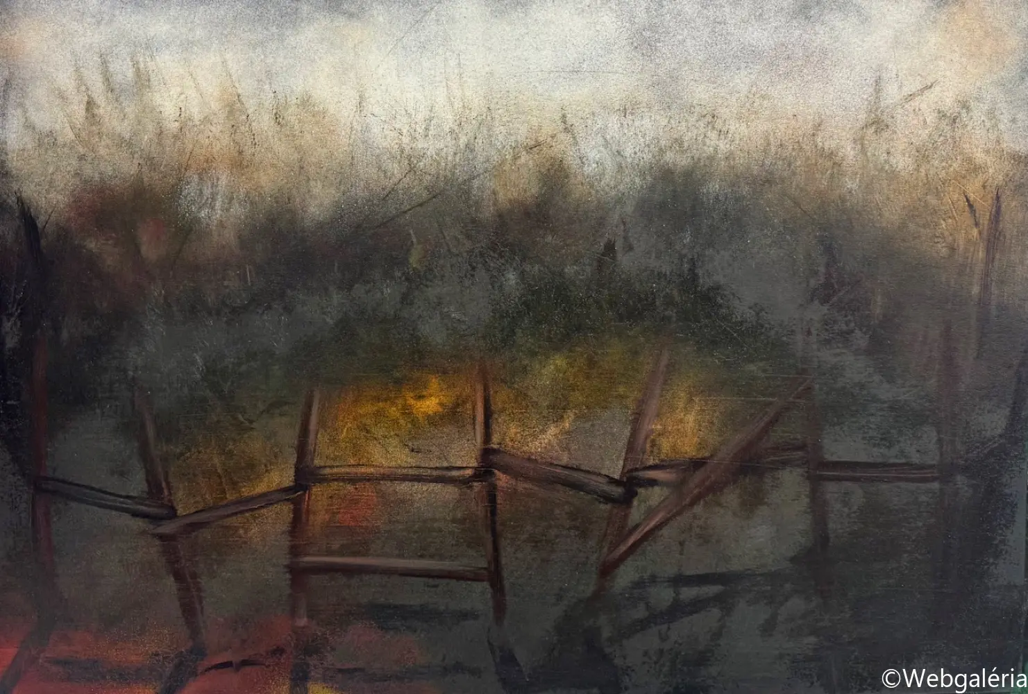 Festészeti munkáim középpontjában a táj mint mentális konstrukció áll. Nem a természet ábrázolása érdekel, hanem azok a belső terek, amelyek az emlékezet, a vágy, a hiány és a bizonytalanság rétegeiből épülnek fel. A képeimen megjelenő tájak nem topografikus helyek, hanem instabil, határ nélküli mezők, ahol a természeti formák-fák, növényi struktúrák, horizontok elveszítik eredeti funkciójukat, és pszichikus jelekké alakulnak. A kert, majd később az út és végül a Tartarosz fogalma mentén egy olyan belső táj bontakozik ki, amely egyszerre hordozza a menedék és a bomlás tapasztalatát. Ezekben a terekben a rom, a nem-hely és a senkiföldje nem pusztán motívumok, hanem szervezőelvek: az átmenetiség, a sodródás és az identitás feloldódásának vizuális formái. A gyakran visszatérő pálmafa-motívum a trópusi idill kollektív képzetét idézi meg, ironikusan elmozdítva azt a hamis ígéretek és az elérhetetlen vágy tere felé. Festészeti technikám a kontroll és a véletlen közötti feszültségre épül. Referenciák nélkül dolgozom, a képek anyagi folyamataiból indulva: lazúros rétegek, törlések, csorgatások, kaparások és oldódások alakítják a felületet. A festmény nem előre elgondolt kompozícióként születik meg, hanem az anyag reakcióin keresztül formálódik, mintegy önmagát építve fel. A felület így nem ábrázol, hanem eseményt rögzít – a széthullás és az újraszerveződés folyamatos állapotát. Munkáimban a sötétség, a bizonytalanság és a lebegés nem negatív tartományok, hanem a jelentésképzés lehetőségei. A képek egy belső alvilág felszíneiként működnek, ahol a romlás nem végpont, hanem a teremtés előfeltétele. Ez a tér számomra az alvilág romantikája: annak elfogadása, hogy a létezés nem stabil formákban, hanem folyamatos átváltozásban ragadható meg.