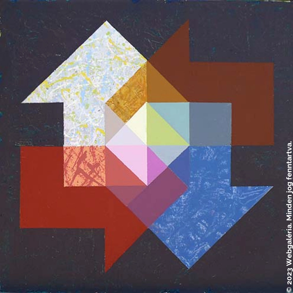 Kántor József természeti ábrázolásainak absztrakt gesztusrendszerébe és örvénylő belső ritmikájába élesen metszenek bele rendszeresen felbukkanó mértani elemek, a materiális őselembe a szellemi konstrukció által létrehozott geometrikus alapelem hatol be. A lírai absztrakció lép frigyre a hard edge elnevezésű művészeti irányzattal, ami a művész világos kompozíciós struktúrát felépítő képességének félreismerhetetlen névjegye. Kántor József pályája kezdete óta használja a legkülönfélébb technikákkal elkészített képző- és iparművészeti alkotásokon a nyíl emblémáját és jelképét. A nyíl ugyancsak kozmikus szimbólum, amely a spirituális megvilágosodás képzettársításán túl az önmagában rejlő belső dinamika megteremtésének is eszköze. A kemény élek mértani alakzatokba kapcsolódó hálózata a festői jelírás közvetlen és spontán jellegét töri meg, amely izgalmas vizuális kontrasztot képez a véletlenszerűséget művészeti médiumba ültető ábrázolásmóddal. Keppel Márton