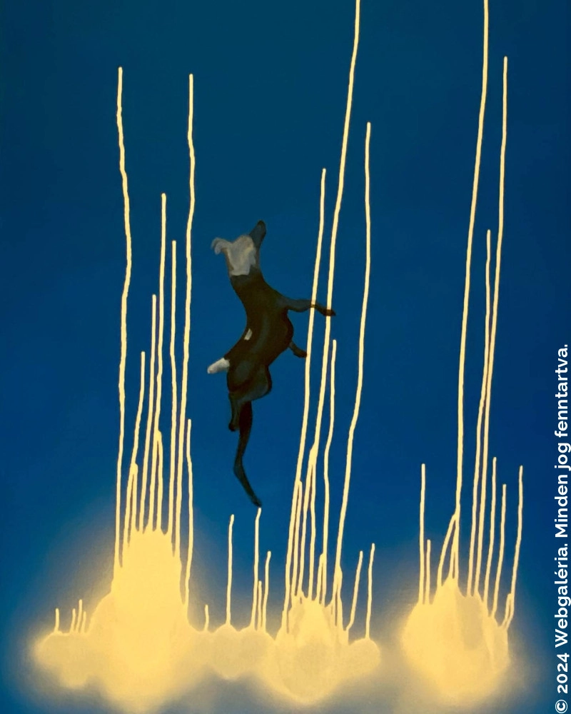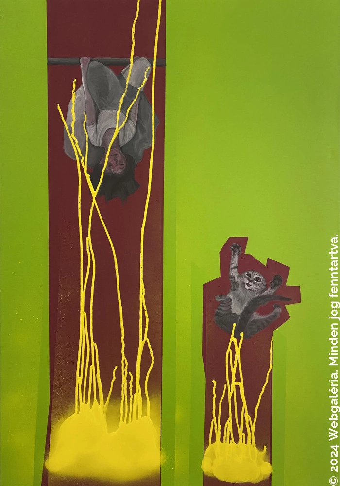 ,,pitypang, nőstényfarkas, alles gut barlang előtt" olaj-vászon,