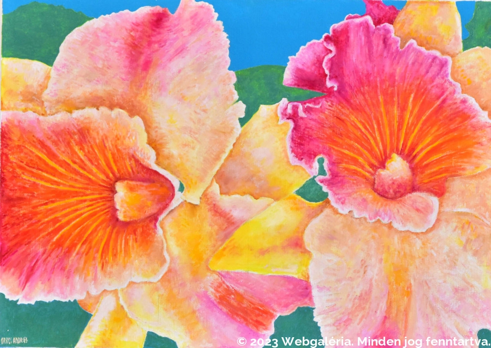 "Orvos András vallottan az egyképes festők közé tartozik: életművének jelentős hányadát egyetlen motívumnak (a virágnak) és a vele kapcsolatban fölmerülő, festészet problémáknak szenteli... Későbbi korszakaiban a virág kiindulóponttá válik, mely a mélyebb, metafizikai kérdések megfogalmazása során többdimenziós szimbólummá formálódik....virágképei gyakran keltenek erotikus képzeteket: plasztikusan domborodó, érzéki szirmok - néha finom áttételeken keresztül, olykor viszont már-már frivol egyértelműséggel - keltenek biológiai képzettársításokat." /Maczkay Zsaklin/